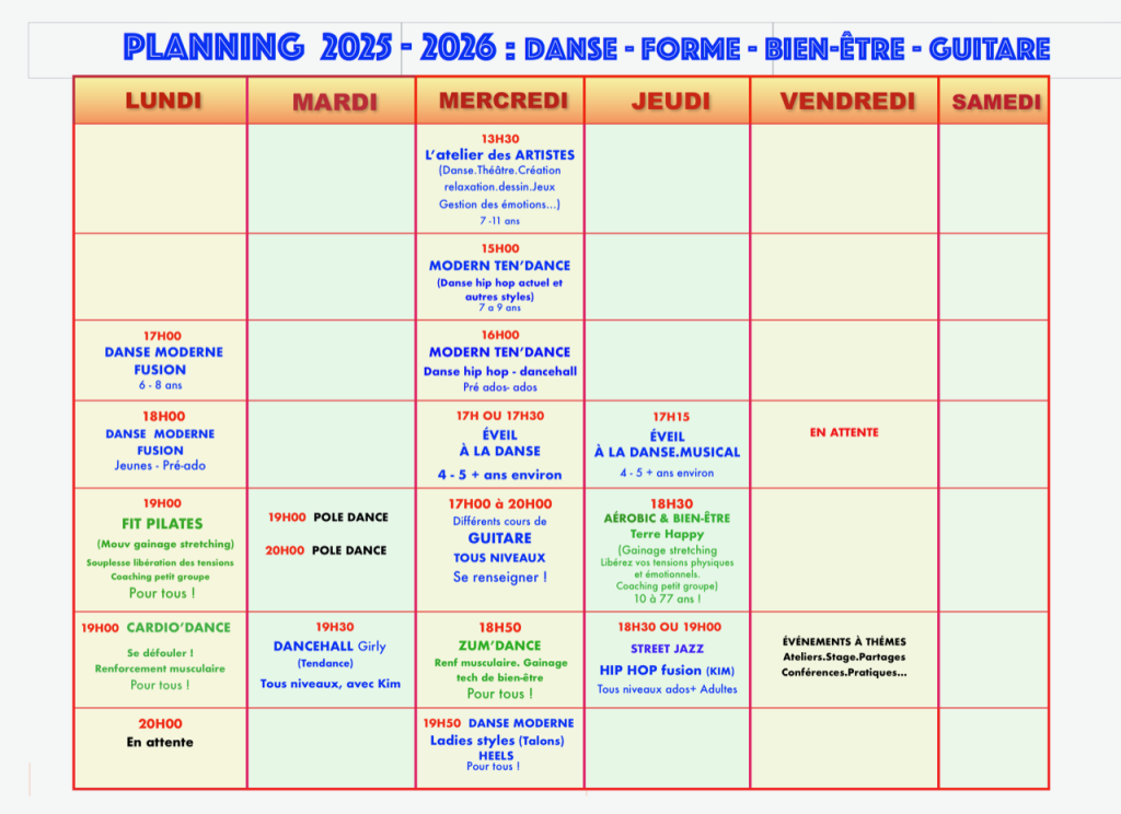 Plannings et tarifs